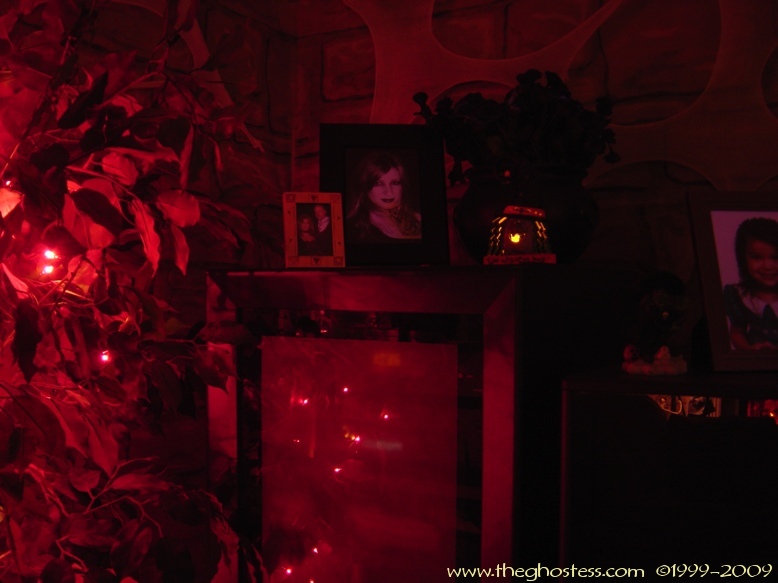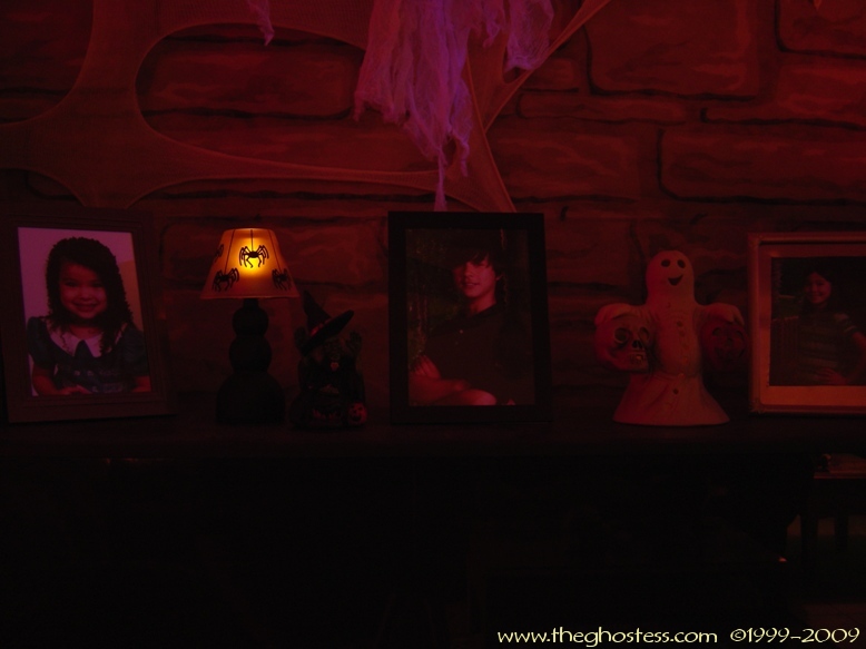 I used Photoshop to "enhance" the kids' pictures for the top of the TV. You have to look closely, but you can see the red eyes, fangs, and long pointy fingernails I gave them. |