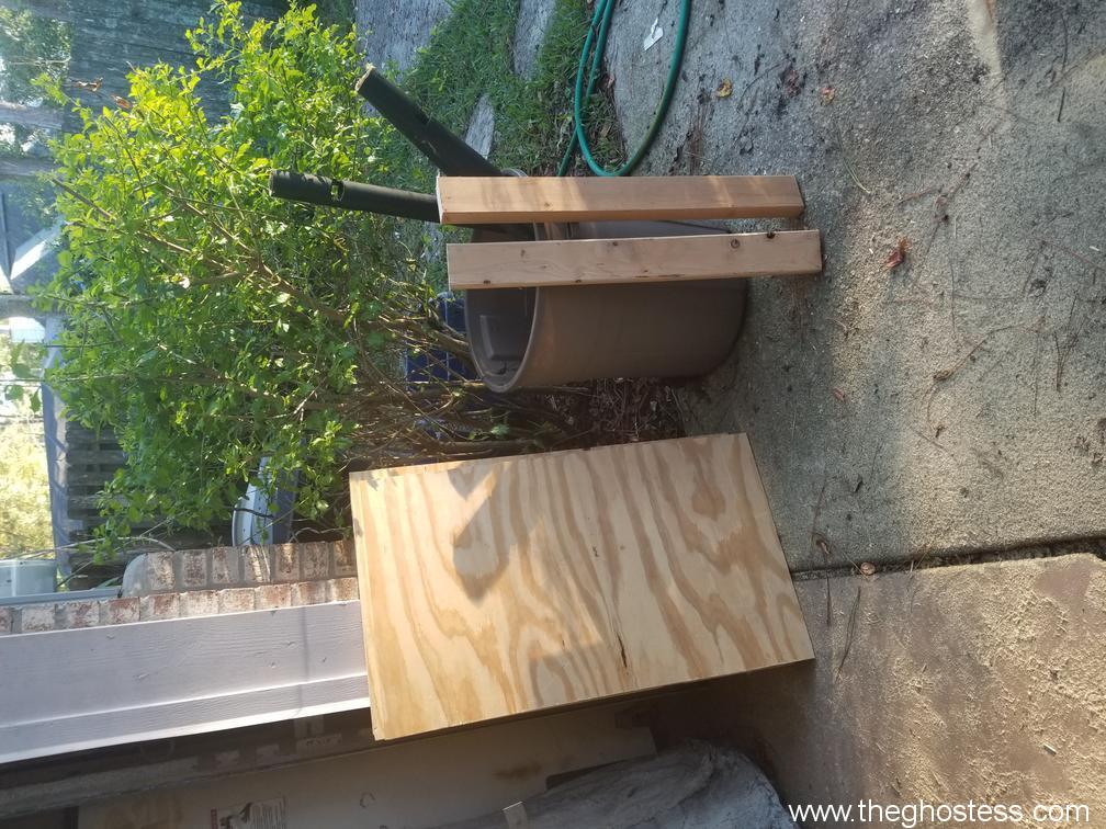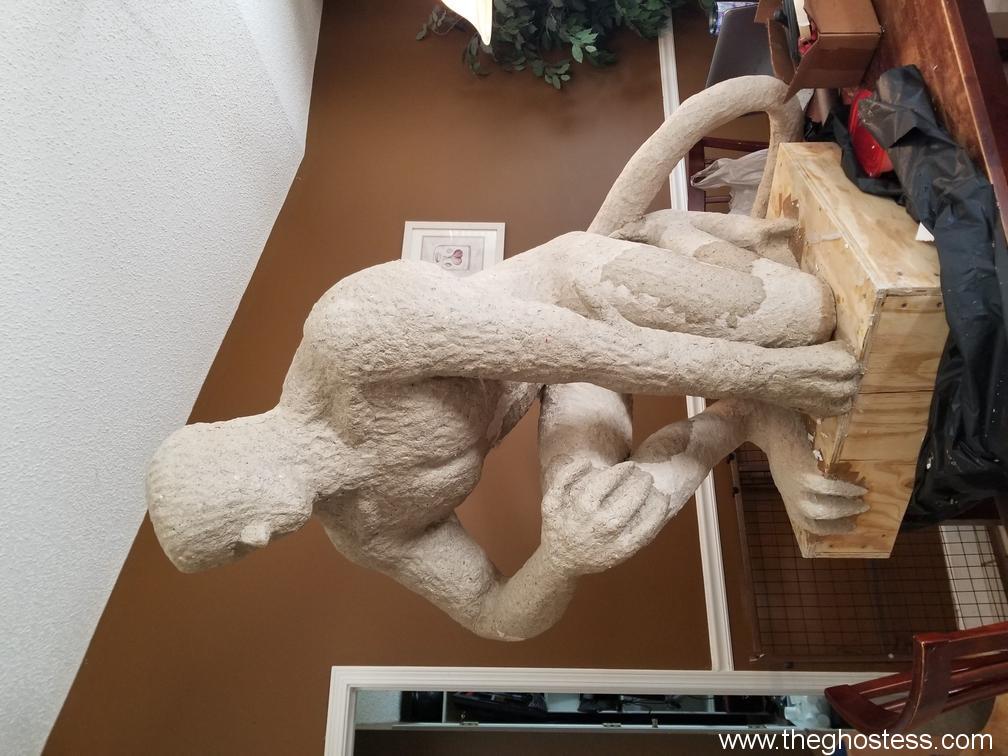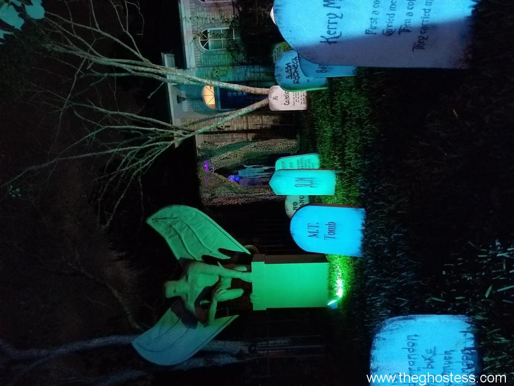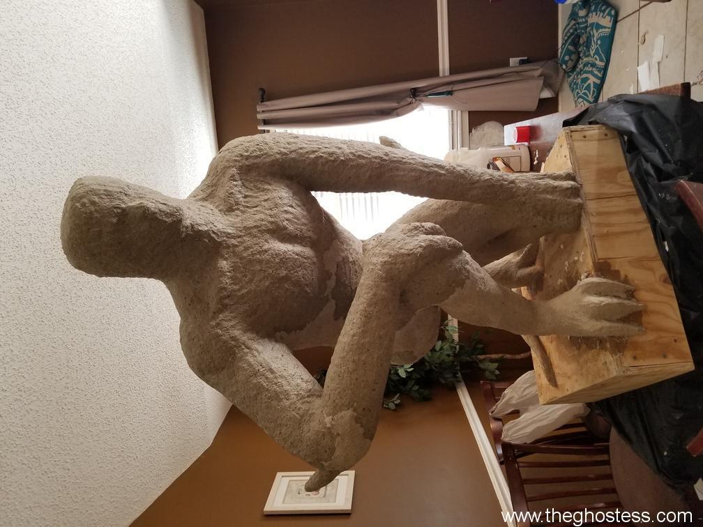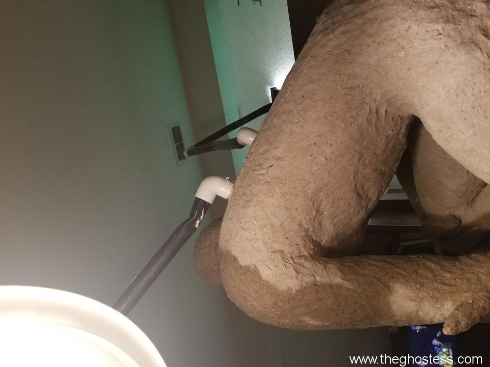 Ocotber 30, 2020 Only one day left, and I am stressing. I have to work tomorrow, and haven't finished setting up my cemetery display, so I can't work on him and finish him. I built a base out of plywood and 2x4s. It's a 3 foot tall base that his build base sits right over the top of. My good friend Elizabeth came down from North Carolina, and helped me with the painting. I had to stop working on him and get a coat of paint on him so he could make it out to the display. I think we got done just before midnight. He was not easy to paint with all the uneven surface and wings.