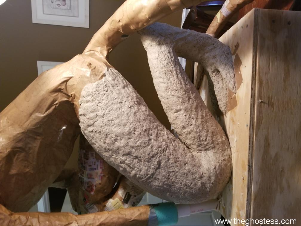 October 21, 2020 Wednesday - I worked more on his legs. Finally started adding home made paper clay to shape his legs better and smooth him out some.