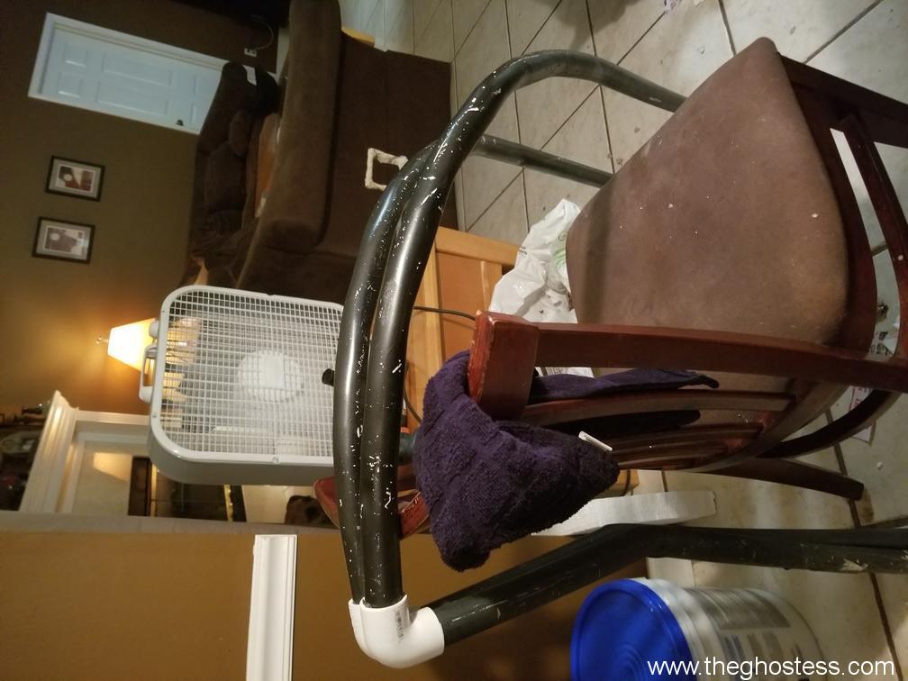 October 28, 2020 I used my heat gun to bend the PVC for the wings. Slow and steady, I heated up the PVC and held it in the position I wanted, then I ran over it with a cool wet washcloth to speed up the cooling process so I could keep going. I screwed the PVC elbows to the base pieces sticking out of the back. These joints will remain uncovered so that I can easily remove the wings or reposition them. |