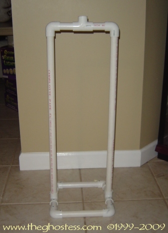 I used a heat gun and bent the PVC about where the knee would be to cause the whole frame to lean back a bit so it didn't topple over like the previous version. It kind of balanced out the whole frame.