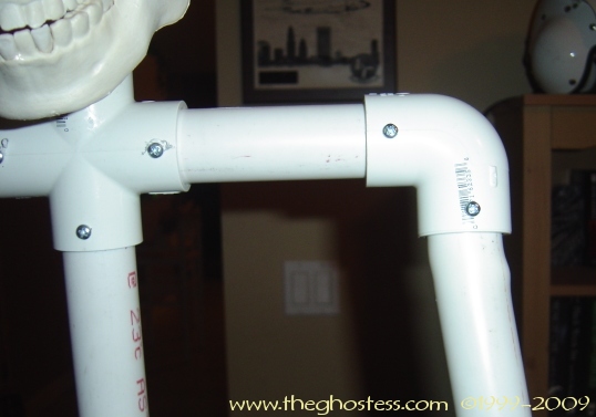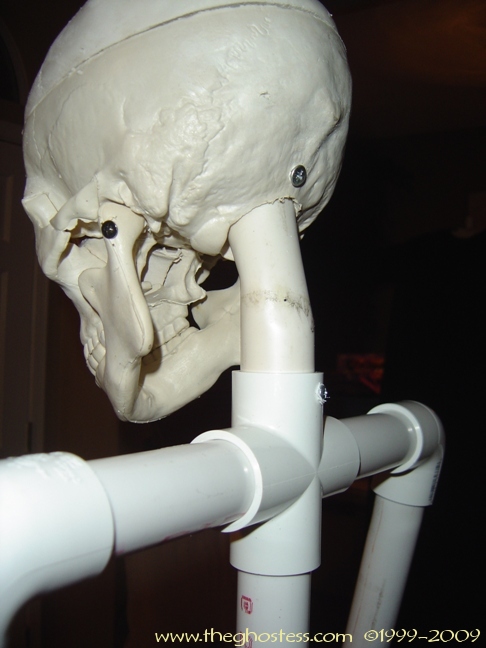 I used a heat gun to bend the neck some, making him look down a little. I also screwed the jaw together and the skull to the PVC.