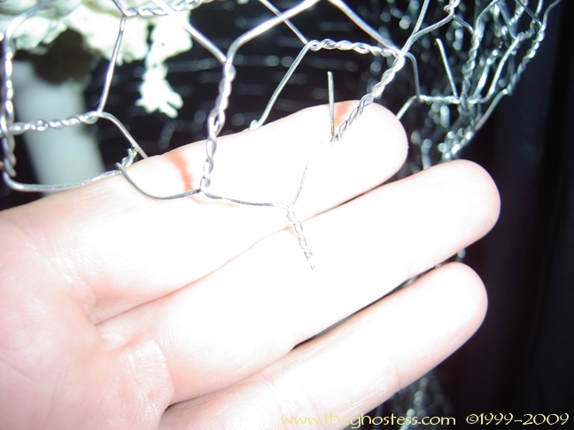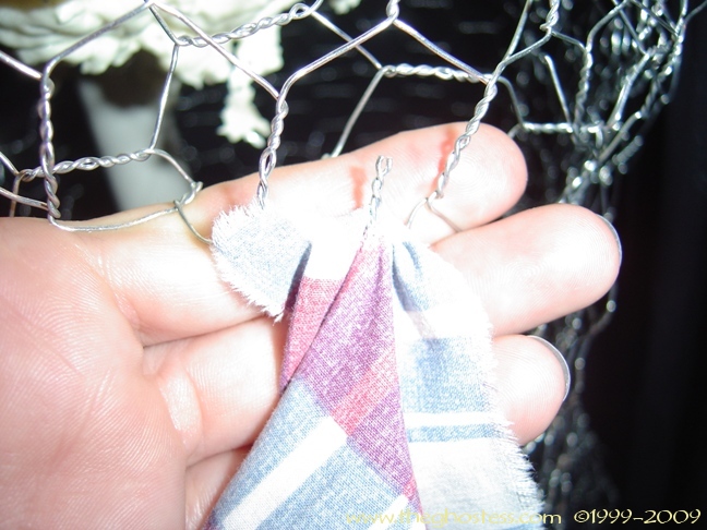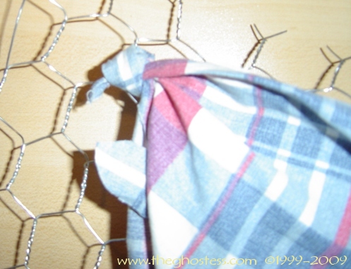 In the spots where there were these pieces of chicken wire sticking out, I just poked the wire through the fabric and then bent the wire over to hold it.